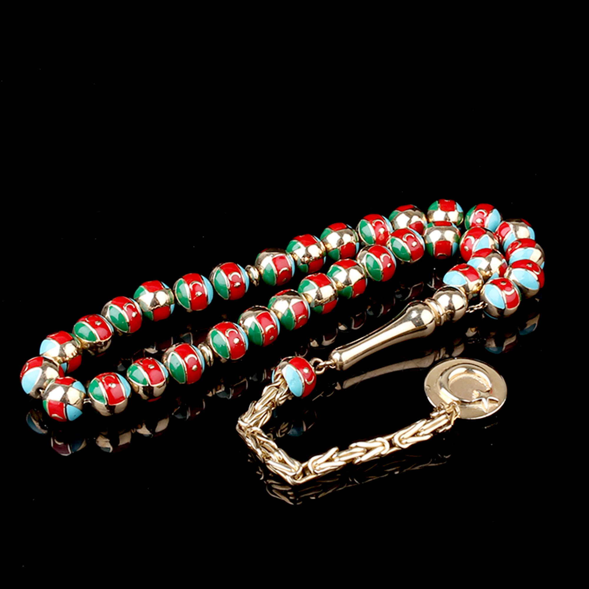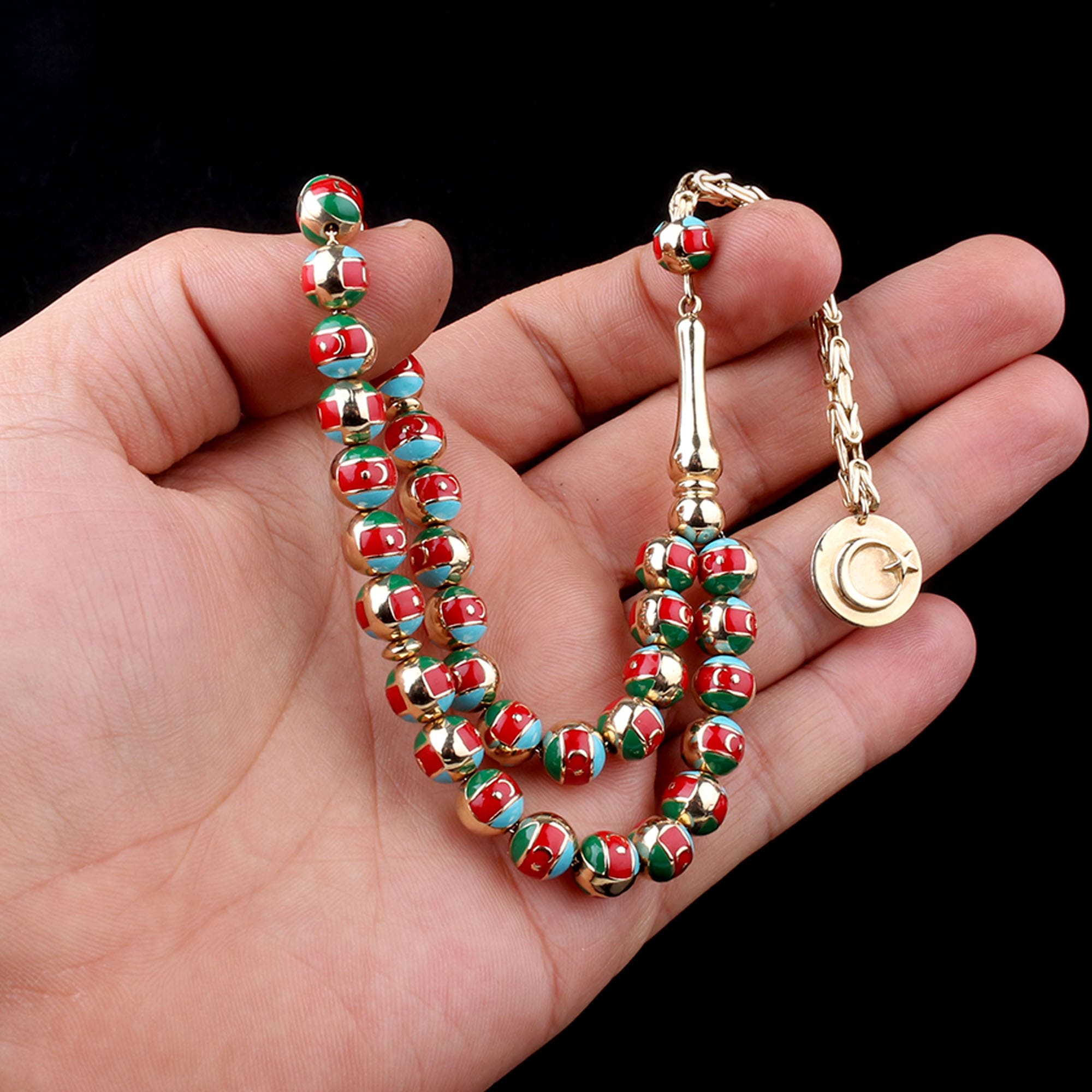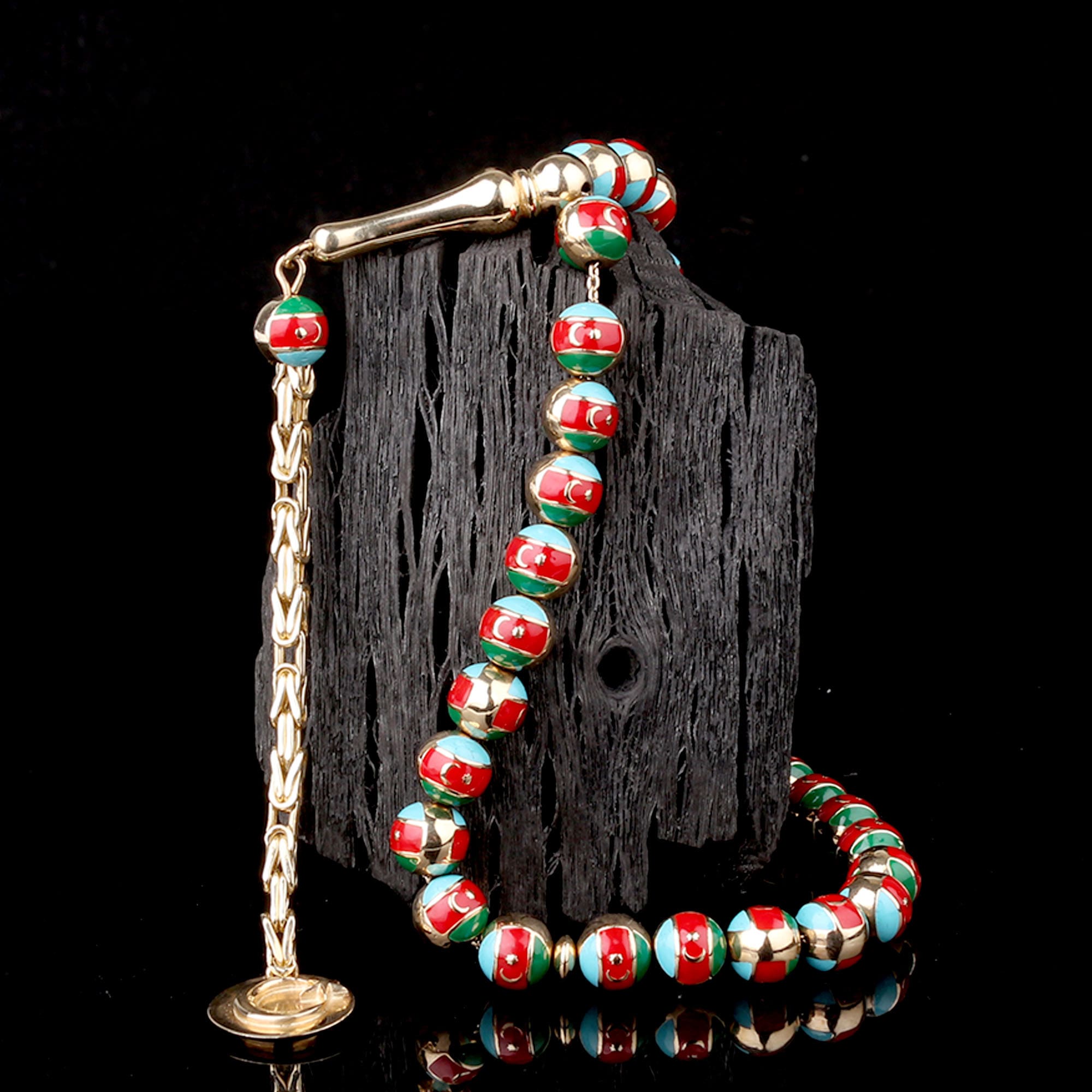 Azerbaycan Bayrak Desenli Altın Tesbih