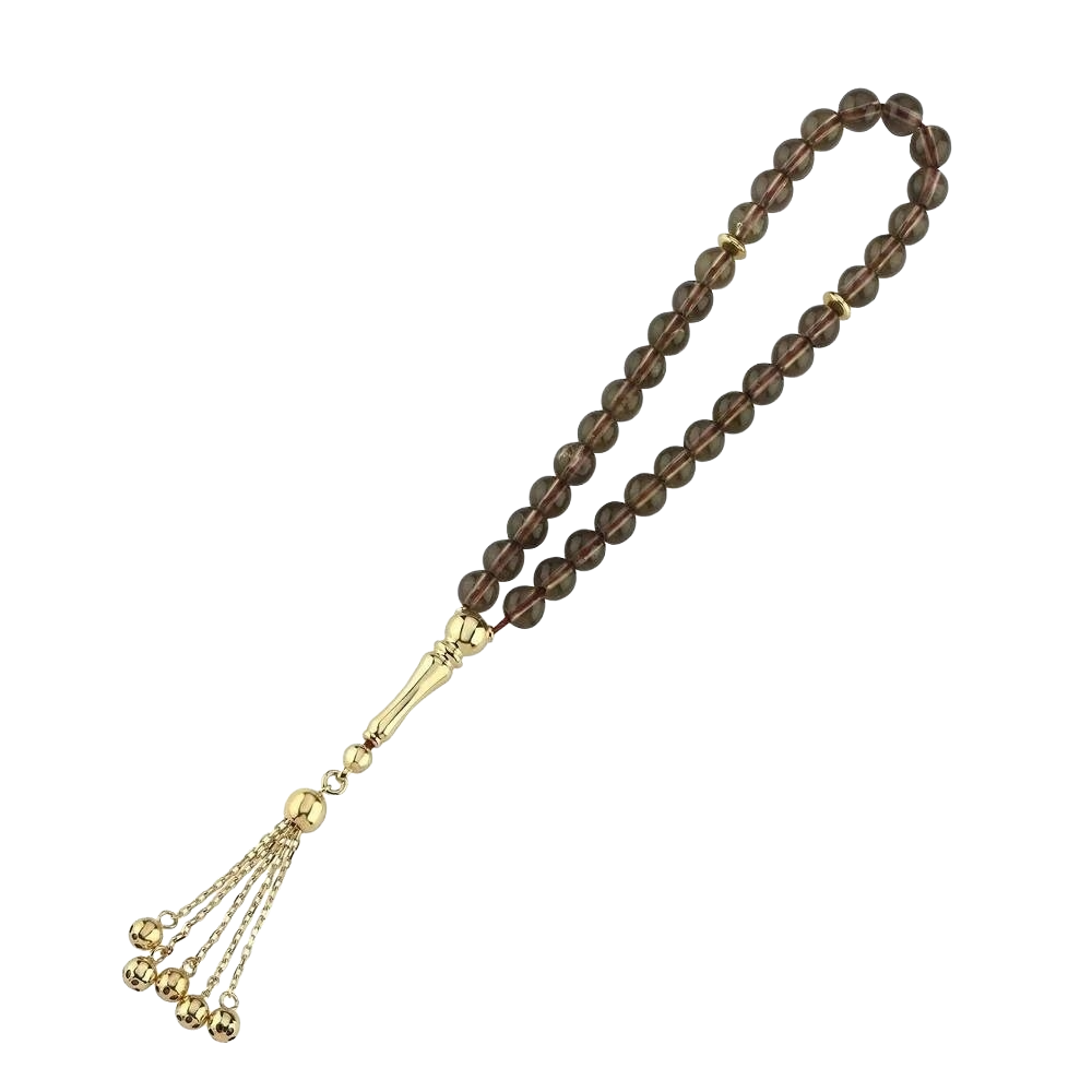 Dumanlı Kuvars Altın Tesbih