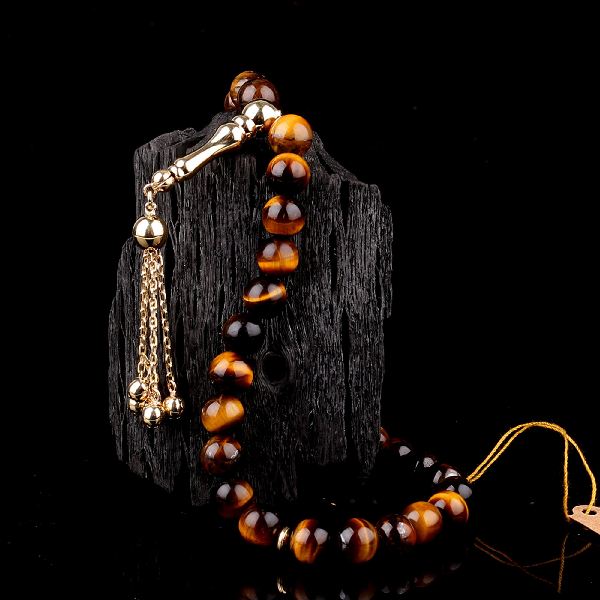 Kaplan Gözü Doğal Taşlı Altın Tesbih