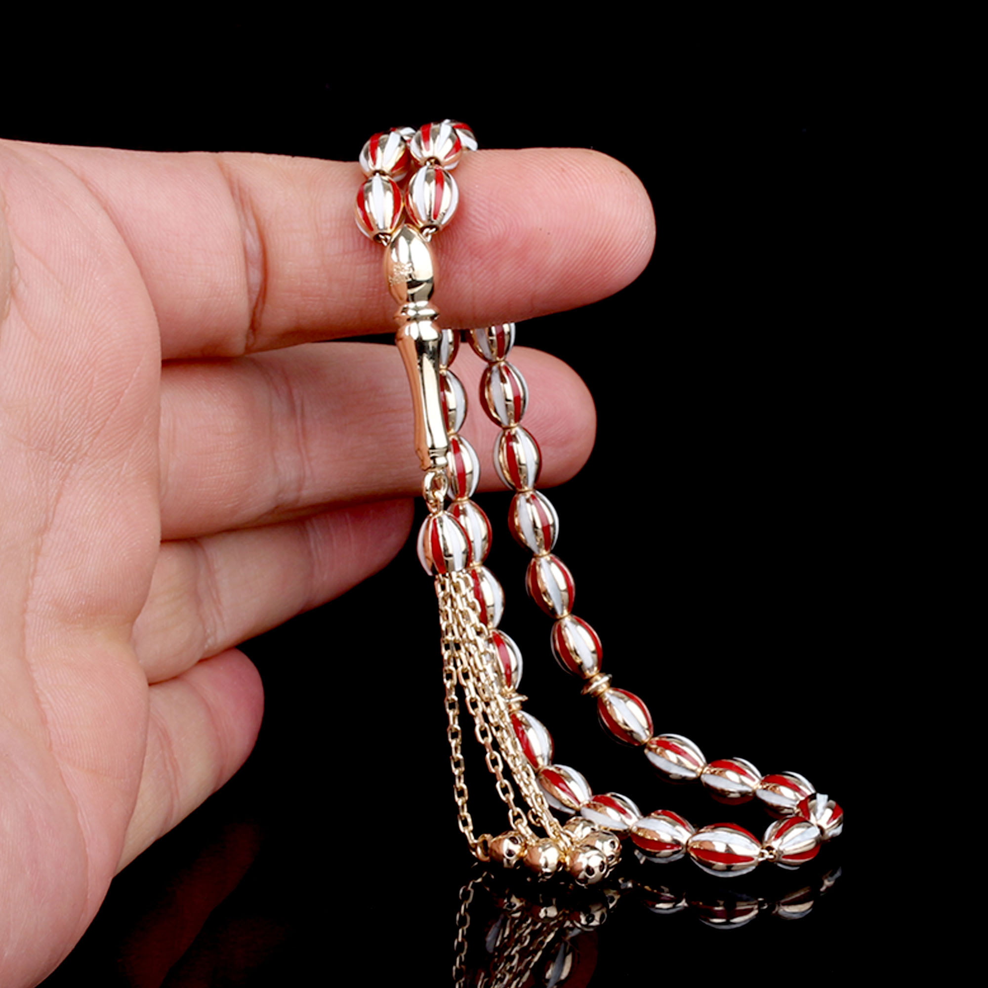 Kırmızı Beyaz Mineli Altın Tesbih