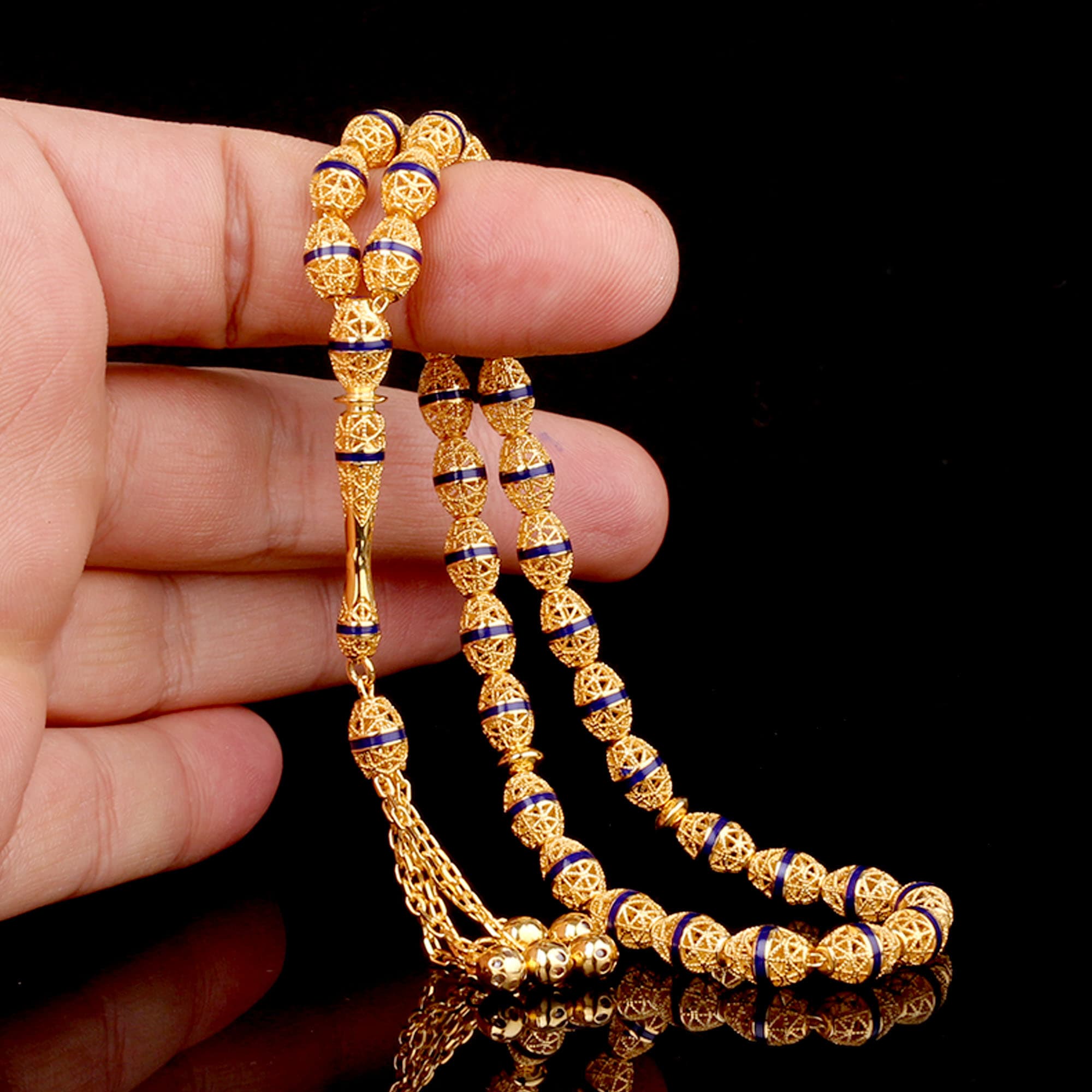 Lacivert Desenli Telkari Altın Tesbih