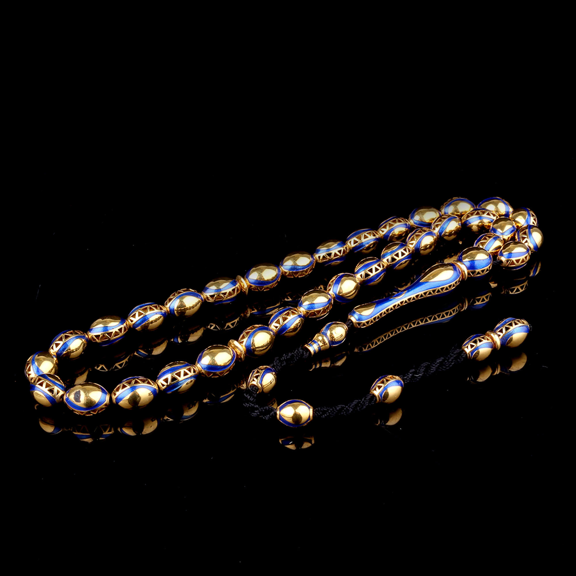 Lacivert İşlemeli Koleksiyonluk Altın Tesbih