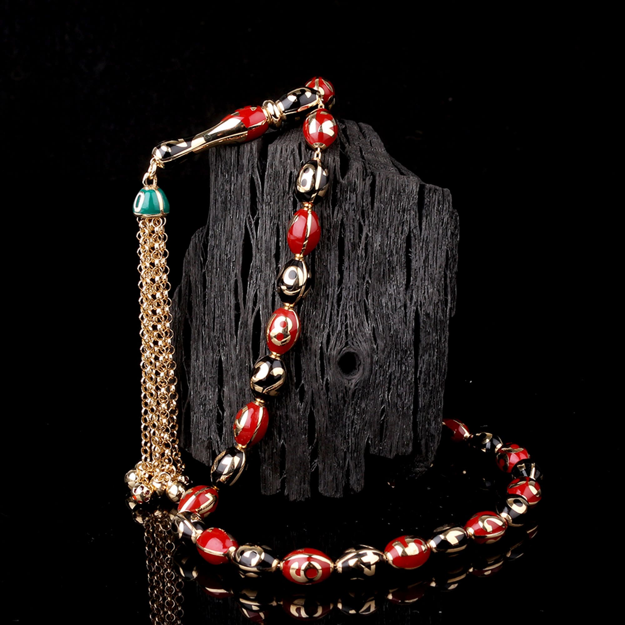 Azerbaycan Bayrak Desenli Altın Tesbih