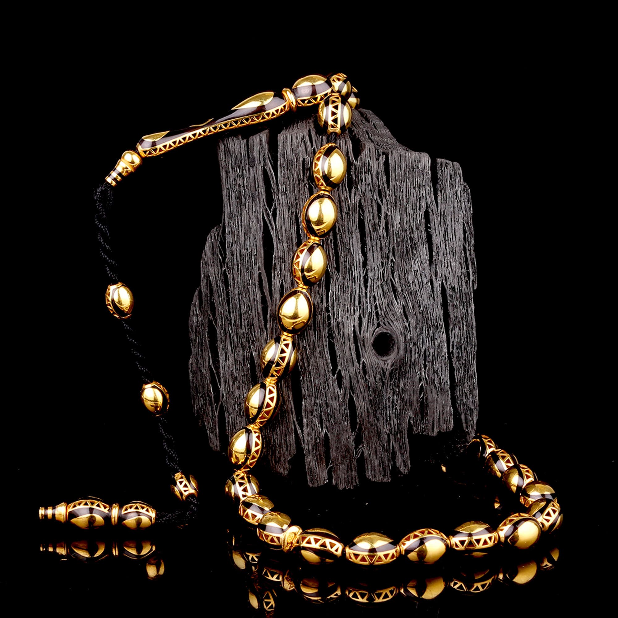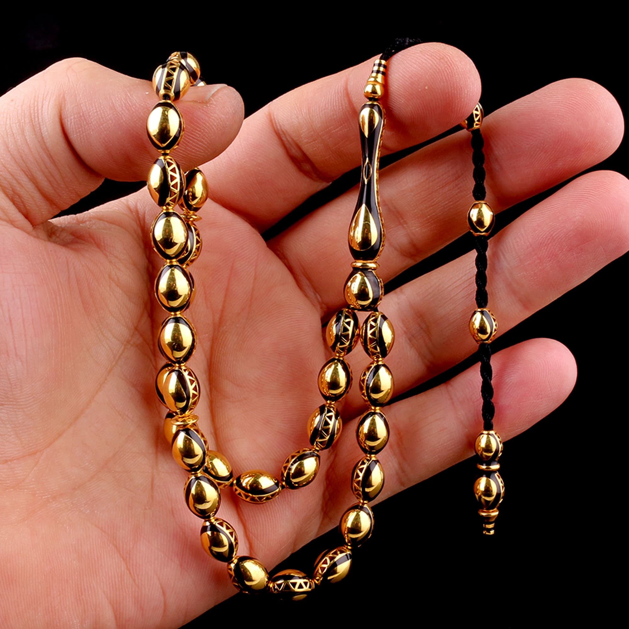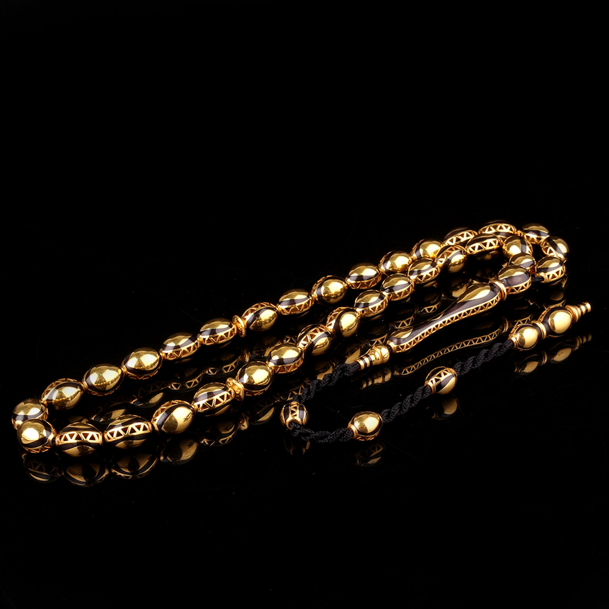 Siyah İşlemeli Sistemli Altın Tesbih