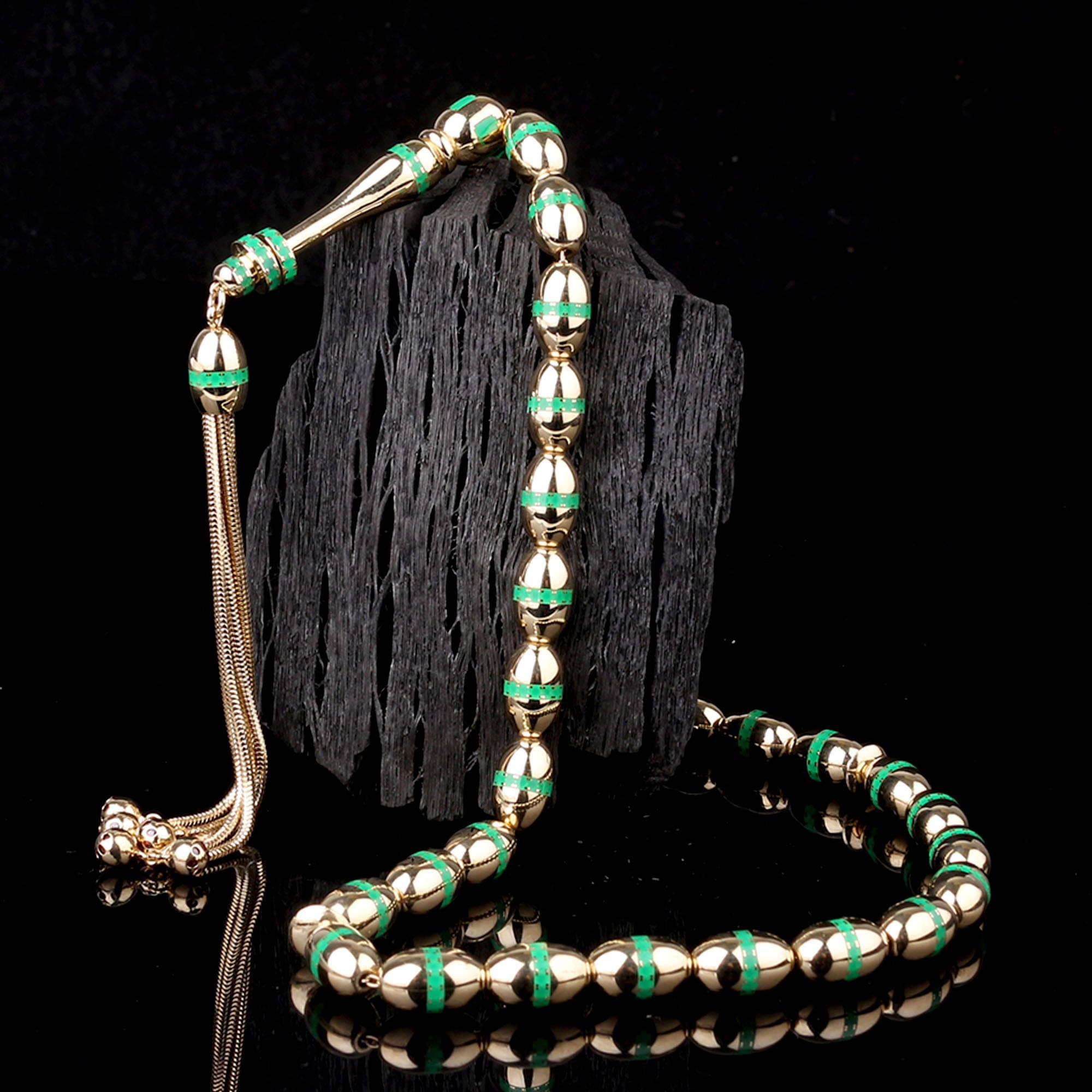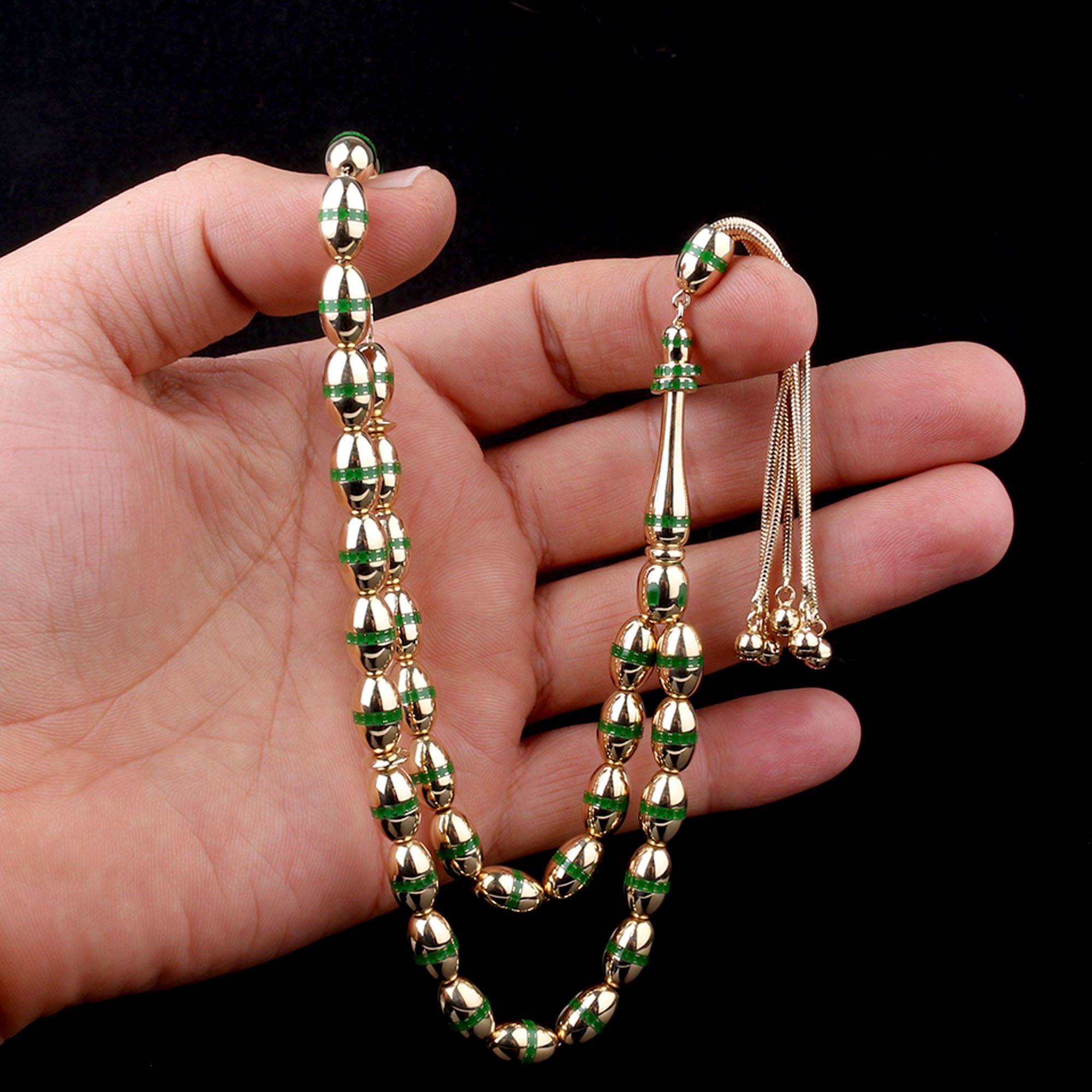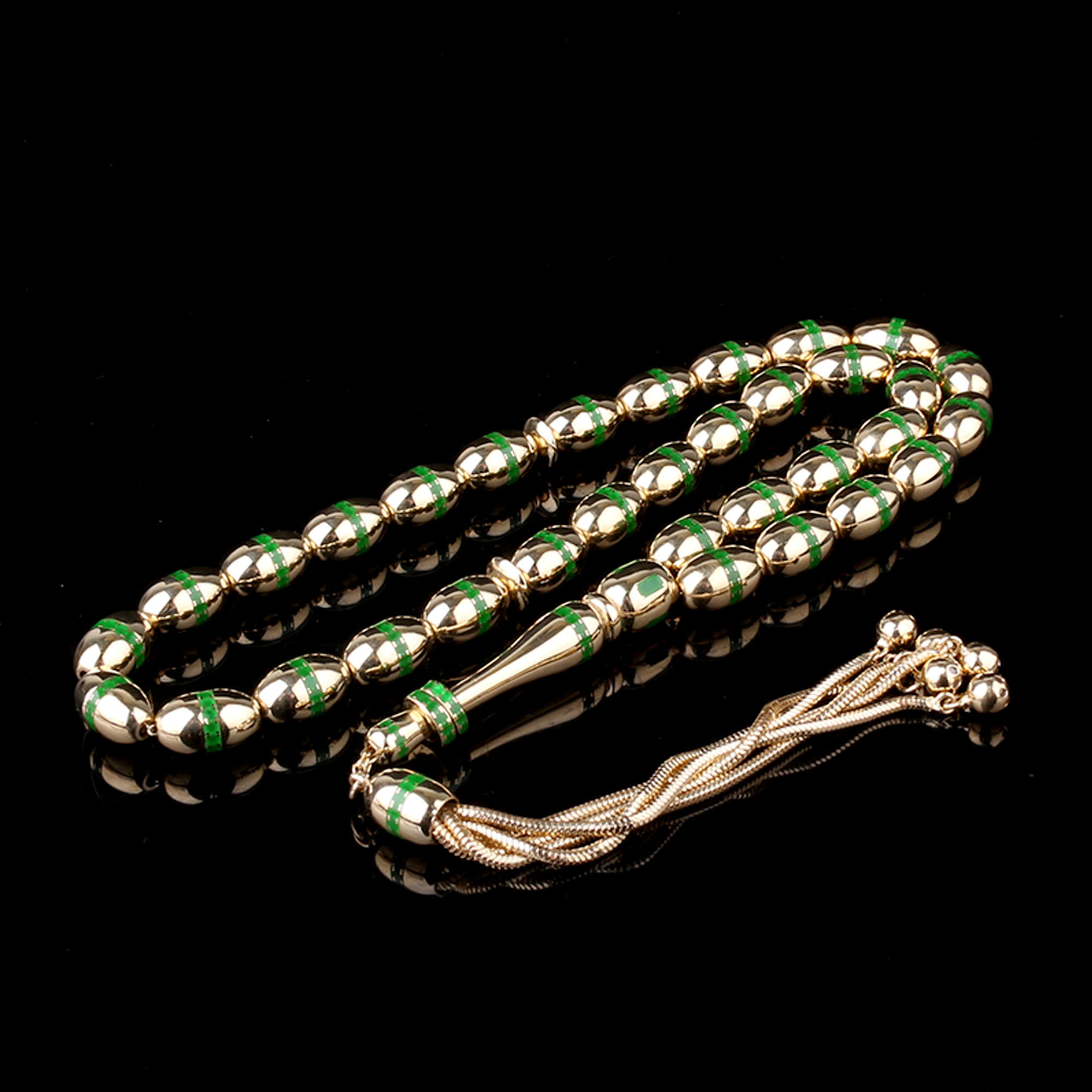 Yeşil Mine İşlemeli Altın Tesbih